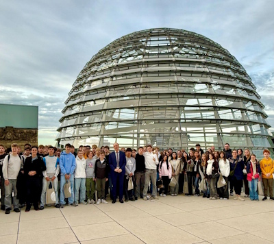 Die Klassen 5 starteten mit ihrer Kennenlernfahrt, bei der das Miteinander im Vordergrund stand und erste Freundschaften gefestigt wurden. Die Jahrgangsstufe 10 reiste nach Berlin: Dort standen der Besuch des Reichstagsgebäudes und zahlreiche historische Orte auf dem Programm – eine eindrucksvolle Begegnung mit deutscher Geschichte und Politik.