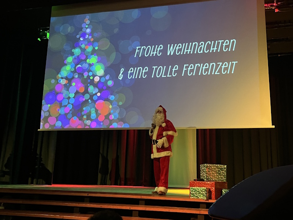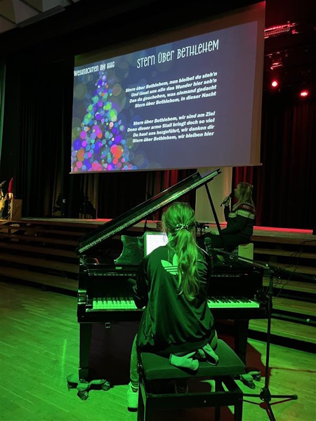 Organisiert wurde die Feier von den Fachschaften Musik und Religion, die für eine feierliche Atmosphäre sorgten. Beim gemeinsamen Singen weihnachtlicher Lieder konnten sich alle auf das bevorstehende Weihnachtsfest und die Ferien einstimmen. Die besinnlichen Momente boten Raum für Gemeinschaft, Freude und Vorfreude auf das neue Jahr. Wir wünschen allen Schülerinnen und Schülern sowie ihren Familien ein frohes Weihnachtsfest und ein gutes neues Jahr.