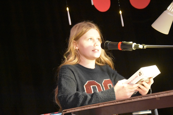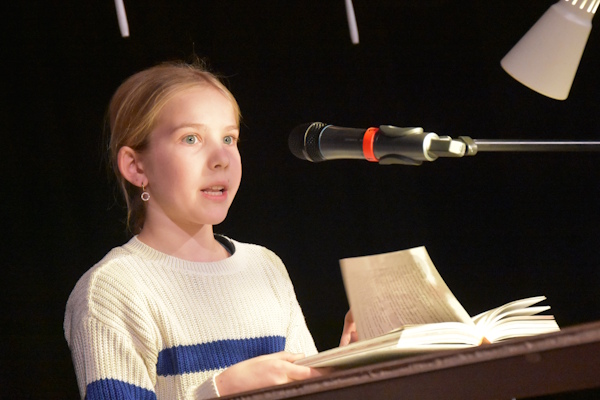 Sarah (6B) begeisterte mit einer Passage aus „Peanut Jones und die zwölfte Pforte“, die voller Fantasie und kreativer Bildkraft steckt.