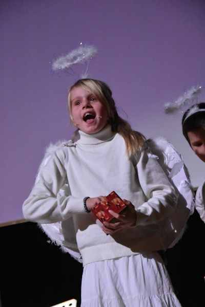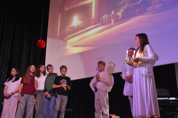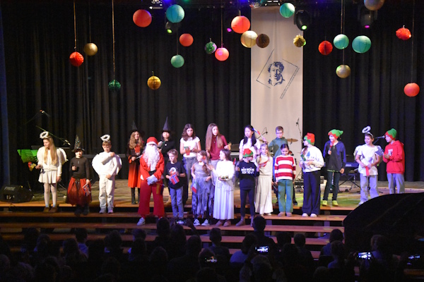 Das Publikum erwartete eine moderne, humorvolle und gleichzeitig berührende Inszenierung: Jugendliche, ganz in ihre Smartphones vertieft, werden durch eine plötzlich auftretende Verbindungsstörung abrupt aus ihrer digitalen Welt gerissen – und erkennen bald, dass Weihnachten in eine Krise geraten ist. Daraufhin tritt der Internationale Weihnachtsrat zusammen, eine farbenfrohe Versammlung von Weihnachtsfiguren aus aller Welt. In kurzen, liebevoll gestalteten Szenen – inszeniert von Herrn Heth und Frau Stadler – zeigen sie den Jugendlichen, was Weihnachten wirklich bedeutet: Zusammenhalt, Wärme, Begegnung und gemeinsame Zeit jenseits von Konsum und Dauerbeschallung. Witzige Dialoge, fantasievolle Figuren und tänzerische Elemente machten diese Szenen zu einem lebendigen und unterhaltsamen Teil des Abends.